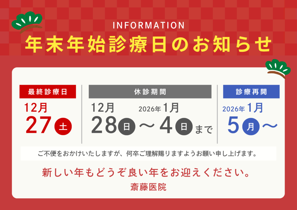 ※2026年1月4日(日)は通常通り日曜休診です。